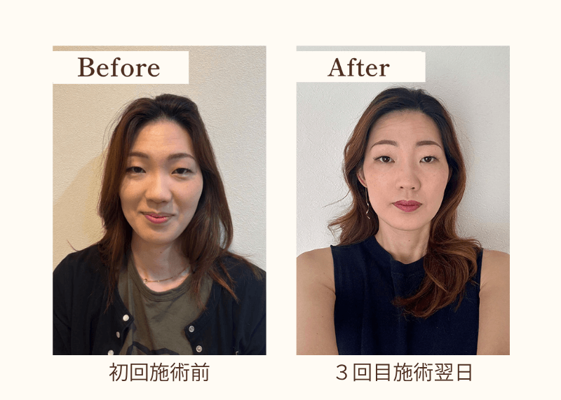 目元や額のシワ、頬骨の出っ張りが気になっていましたが、施術後はみるみる薄くなり、鏡を見るのが楽しみに […]